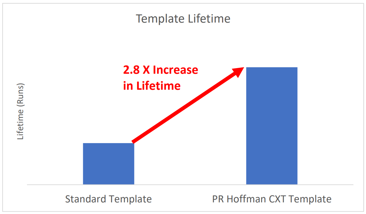 Converting your traditional template process to the CXT product will improve your overall process cleanliness by eliminating the constant template changes, degrading traditional pads and offering the fast and easy pocket rinse between runs.