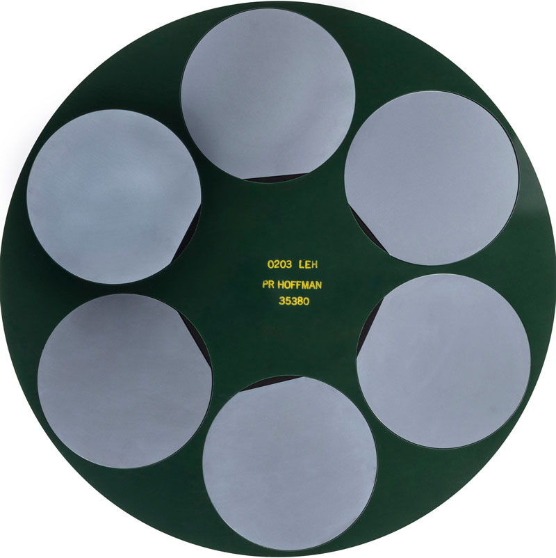 Common Sizes – Template sizes (up to 600mm diameter) for common silicon wafer and other substrates, for single-side polishers using waxless mounting polishers. Templates are completely customer specific so every order is made to the most current revision of the customer specification. PR Hoffman realizes that every customer is not the same and requires their specific custom template.