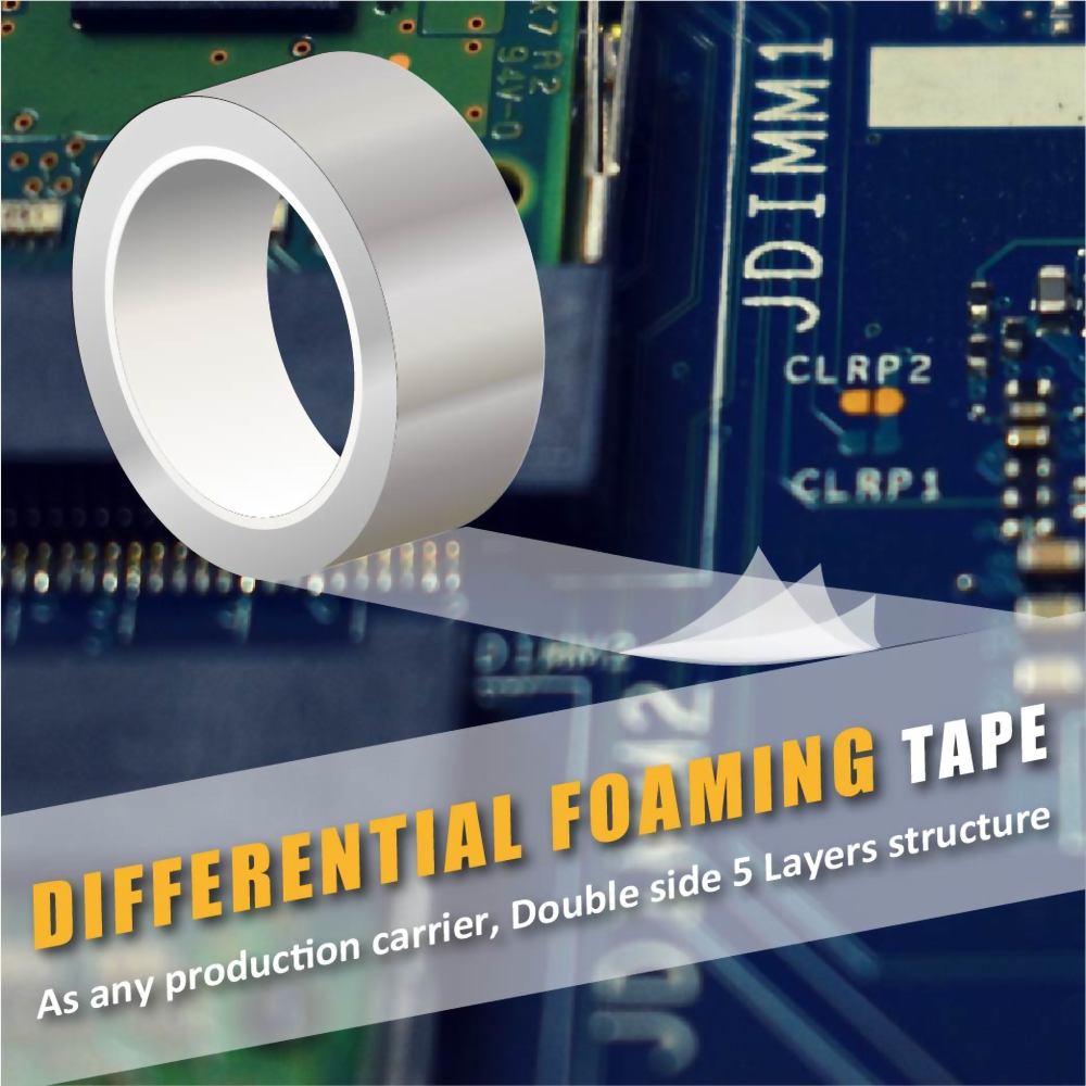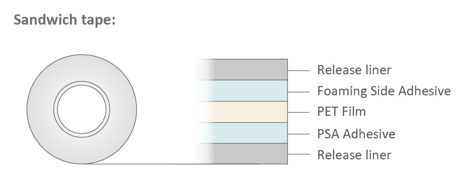 ♠ Double side with foaming adhesive, for any production process, as carrier or temporary fixing.